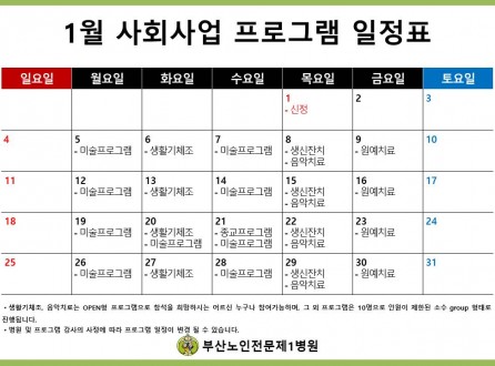 1월 사회사업 프로그램 일정표